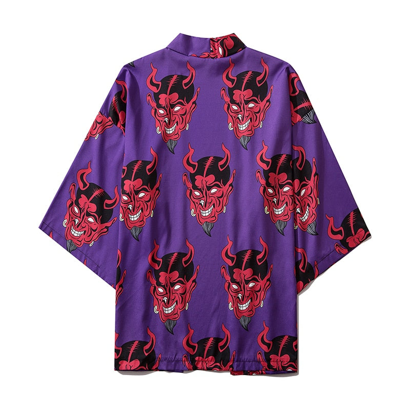 Experience the beauty of Japanese designs with the Haori Kimono Manga Jacket, featuring a stunning print of a Demon Oni and Woman Samurai. This lightweight jacket is perfect for Matsuri festivals, manga conventions, or cosplay costumes. It pairs well with cargo pants, sneakers, and a black or white T-shirt. The Haori Kimono collection features models inspired by Japanese kimono clothing for both men and women. For a traditional ninja style, pair it with Geta sandals or Tobi shoes. Experience the beauty and elegance of Japanese fashion with this unique and eye-catching piece.