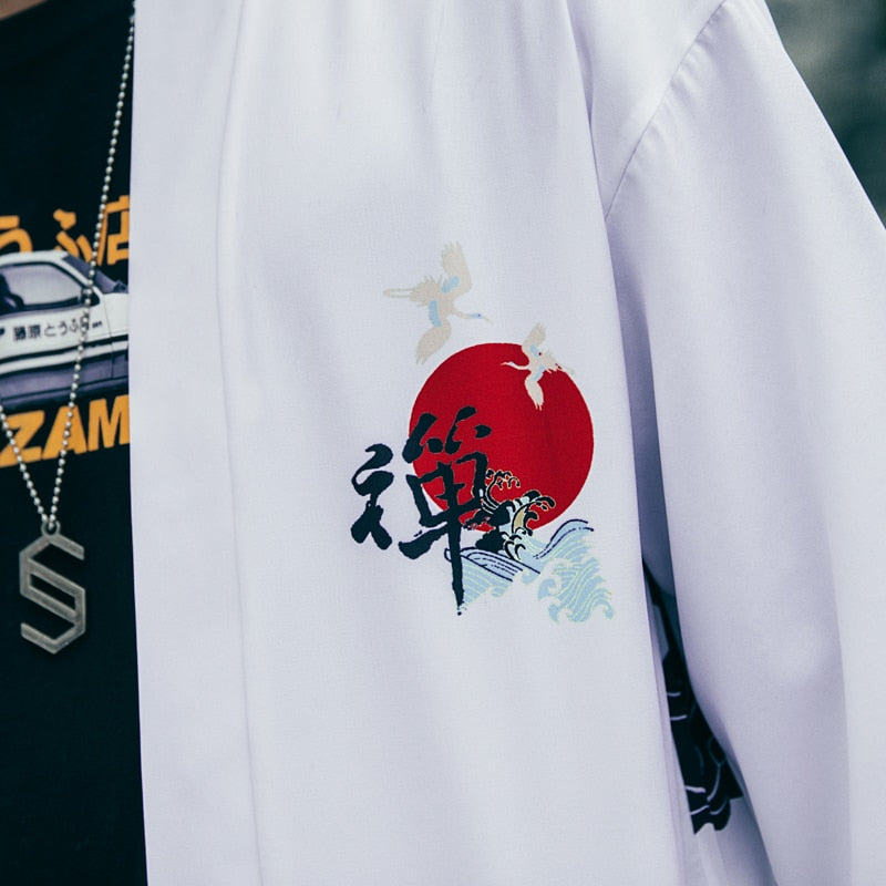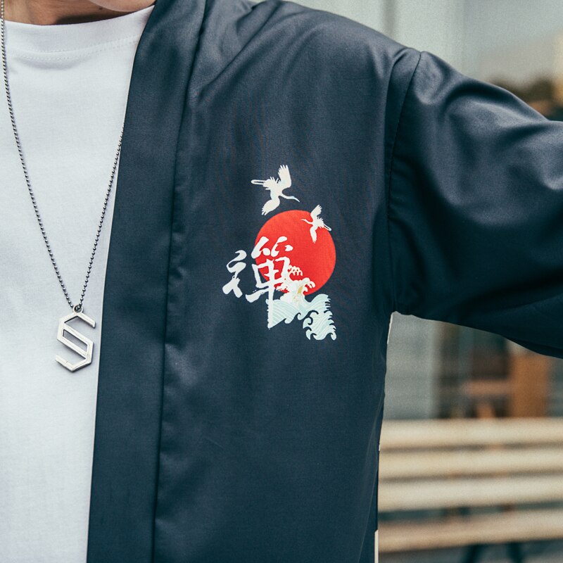 Cultural charm: The kimono-inspired design elements, including wide sleeves and a wrap-style closure, infuse the jacket with a touch of elegance and cultural charm, setting it apart from ordinary streetwear.
